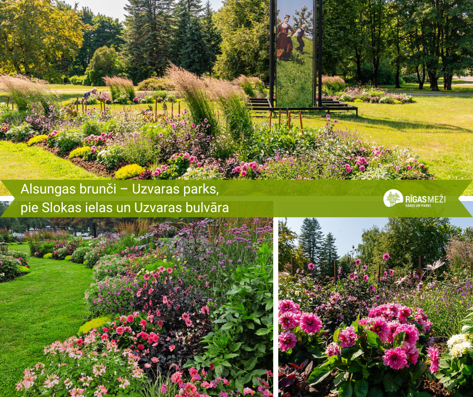 Rīgas Grand Prix - Alsungas brunču krāsu un rakstu dobe, Uzvaras parkā, pie Slokas ielas un Uzvaras bulvāra krustojuma