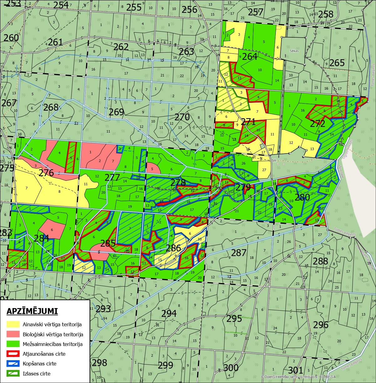 Bioloģiski vērtīgajā teritorijā ciršanas darbi būs tikai gadījumos, ja tie nepieciešami infrastruktūras uzturēšanai (iepriekš veicot saskaņojumus ar dabas aizsardzības speciālistu).