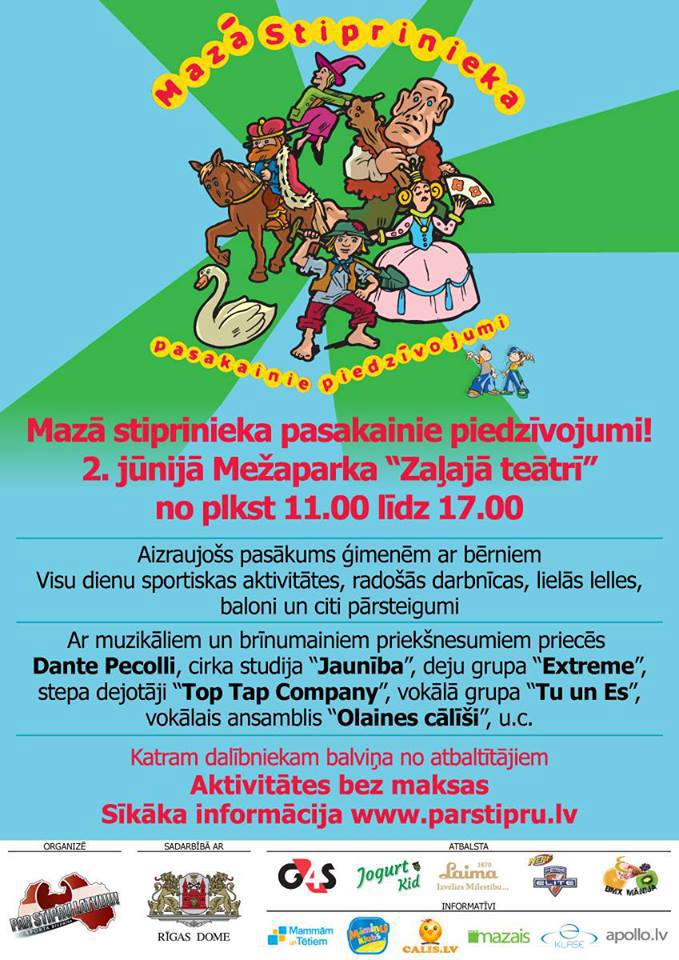 Ikviens varēs atgriezties pagātnē un ieraudzīt „Garo pupu”, sastapt „Zelta zirgu”, „Minhauzenu”, „Pūķi”, „Sprīdīti”, „Lutausi” un pat „Zelta zivtiņu”. Visas dienas laikā bērniem būs iespēja piedalīties dažādās sportiskās uzdevumu joslās, pārbaudot savu izveicību, ātrumu, domāšanu un citas bērnu attīstošas īpašības. Varēs iesaistīties radošajās darbnīcās – zīmēt uz asfalta un apgleznot savu īpašo plastmasas glāzīti!