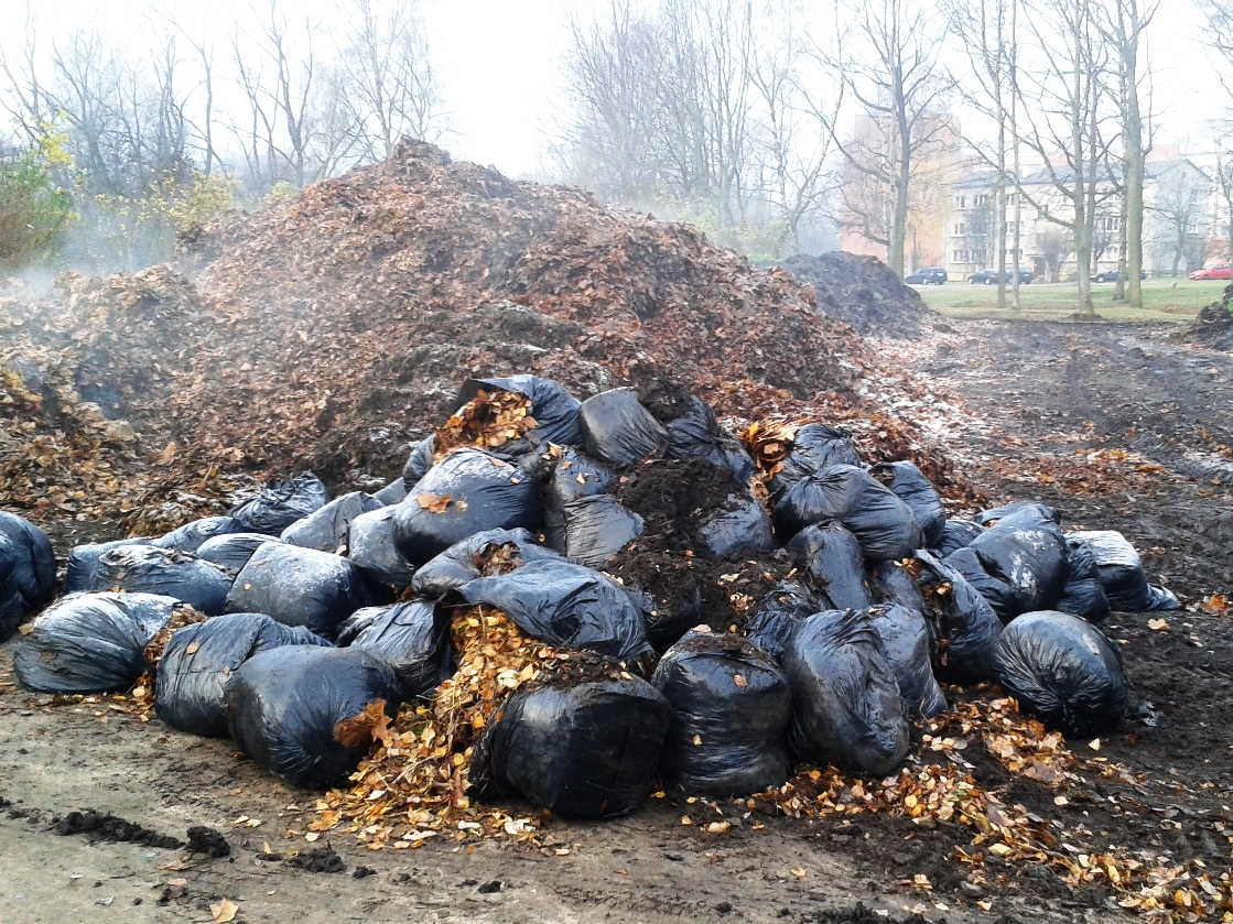Nekārtības biomasas kompostēšanas laukumā Nordeķu parkā