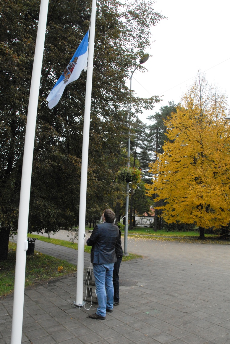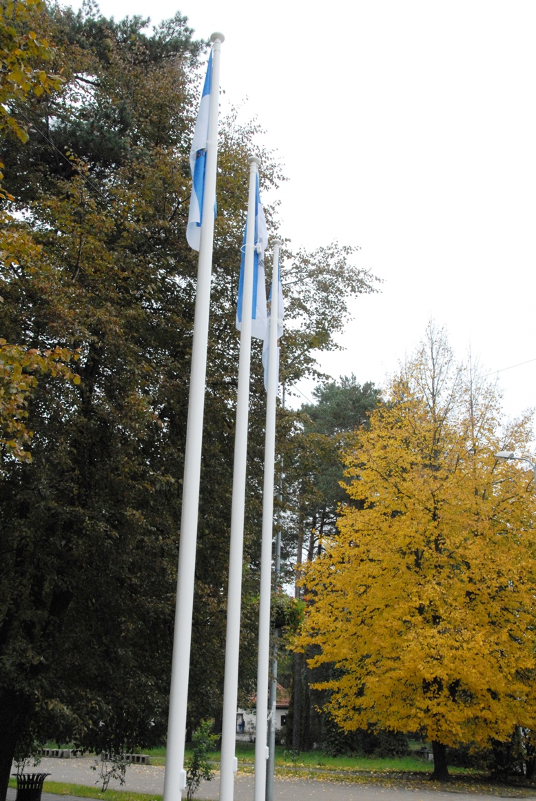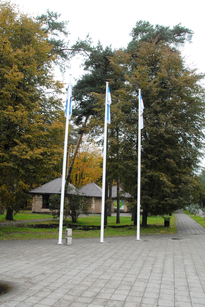 Pie ieejas "Mežaparkā" pacelti Rīgas domes karogi