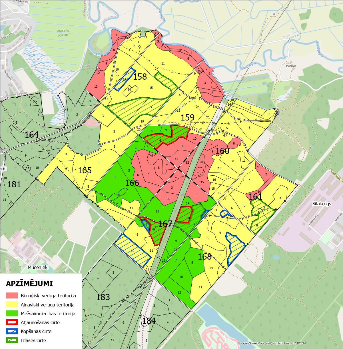 Mežaudzes funkcionālais zonējums, Zaķu apgaita, pie Silakroga, Sunīšiem un Muceniekiem: