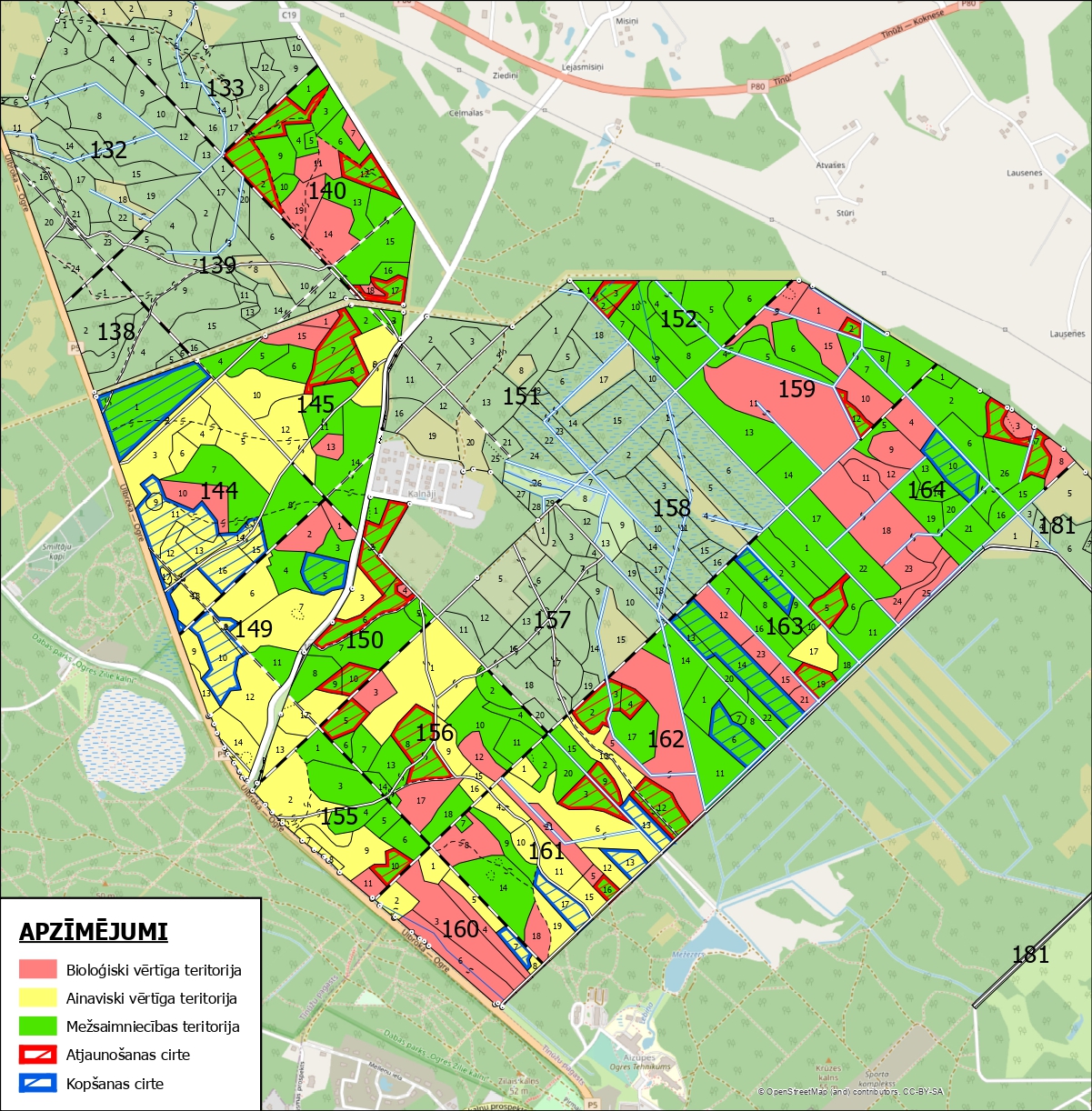 - Darbu mērķi: dabas vērtību saglabāšana, rekreācijas iespēju attīstība, pēctecīga meža atjaunošana un esošās mežaudzes retināšana.