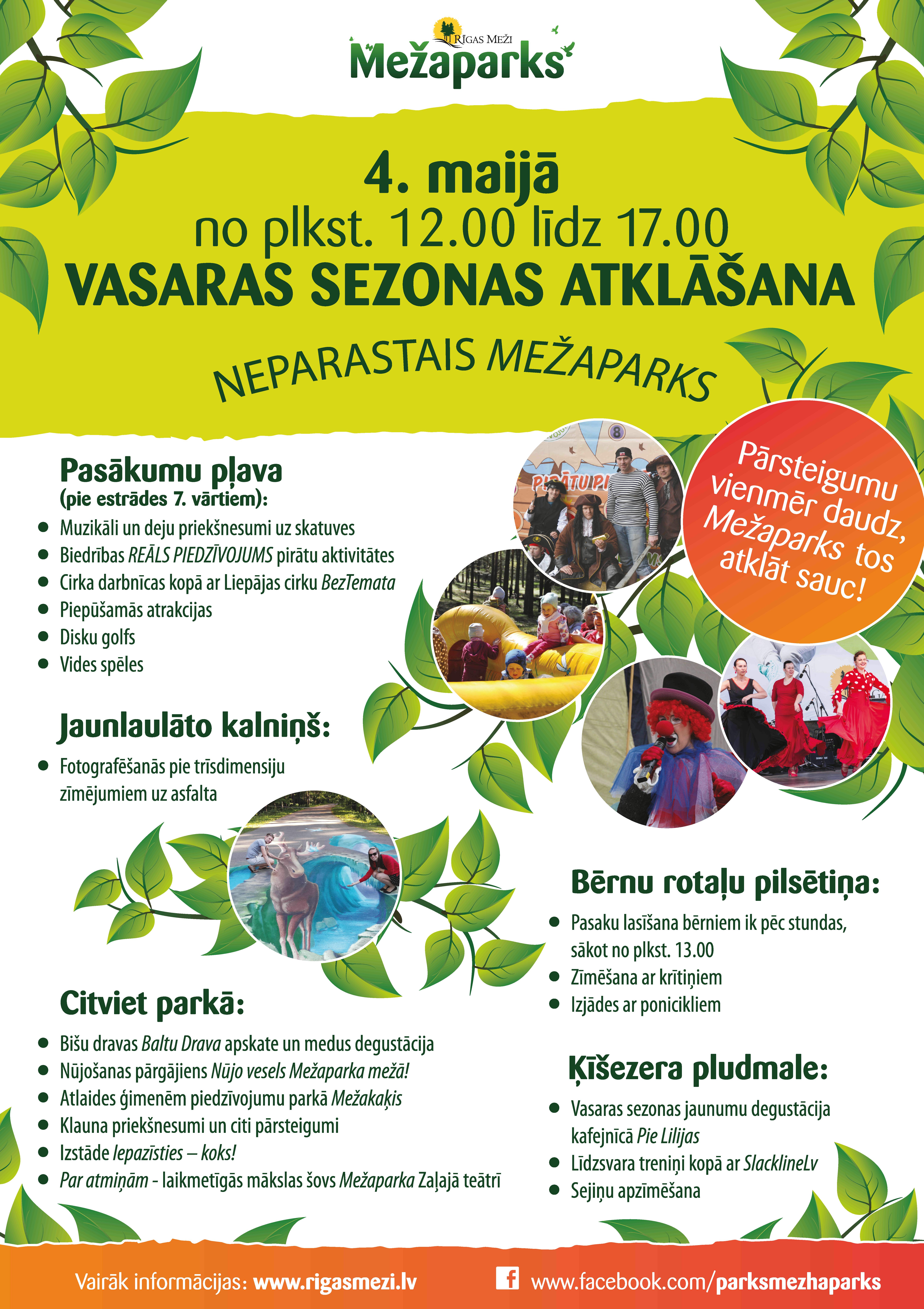 Interesentiem bija iespēja piedalīties nūjošanas pārgājienā „Nūjo vesels "Mežaparka" mežā”. Savukārt Zaļajā teātrī varēja vērot laikmetīgās mākslas šovus, kurus organizēja deju grupa „The Others”. Bērnu rotaļu pilsētiņā pasakas bērniem latviešu un krievu valodā lasīja dzejnieks Mikus Straume un Rīgas Krievu drāmas teātra aktieris Maksims Busels.
