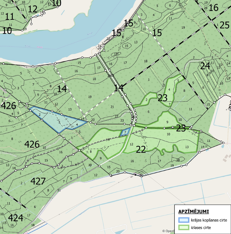 Meža izstrādes darbu laikā tiks cirsti koki krājas kopšanas un izlases ciršu veidā. Ciršu laikā tiks cirsti augšanā atpalikušie un slimību invadētie koki, kā arī retināta esošā mežaudze. Darbi nodrošinās optimālus augšanas apstākļus spēcīgākajiem kokiem, dodot tiem vairāk gaismas un vietas, lai attīstītos stiprāka un pret ārējiem vides un bioloģiskiem faktoriem noturīgāka mežaudze. Vienlaicīgi tiks uzlabota meža vides rekreatīvā vērtība, kā arī nodrošināta iespēja plašākai bioloģiskās daudzveidības attīstībai arī meža zemsedzē. Zarus un citus ciršanas atlikumus darba gaitā un pēc darbu pabeigšanas iespēju robežās paredzēts no meža izvest. Esošie meža celiņi pēc darbu pabeigšanas tiks sakārtoti vismaz stāvoklī, kādā tie bija pirms mežizstrādes uzsākšanas.