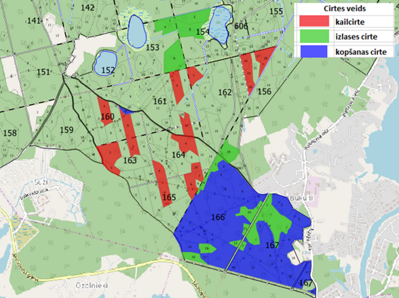 Darbi tiks veikti atbilstoši Garkalnes novada teritorijas plānojumam meža teritorijā “Saimnieciskie meži” (M), mežu teritorijā “Mežsaimnieciski nozīmīgie saudzējamie meži” (M2), mežu teritorijā “Ainaviski nozīmīgi saimnieciskie meži” (M3), un mežu teritorijā “Rekreācijai nozīmīgi saudzējamie meži”. Krājas kopšanas cirtes nodrošinās optimālus augšanas apstākļus spēcīgākajiem kokiem, dodot tiem vairāk gaismas un vietas, lai attīstītos stiprāka un pret ārējiem vides un bioloģiskiem faktoriem noturīgāka mežaudzes. Kailcirtes un izlases cirtes tiks zāģētas teritorijās, kur pēc Garkalnes novada teritorijas plānojuma ir atļauts veikt galveno cirti un mežaudzēm ir atbilstošs galvenās cirtes vecums.