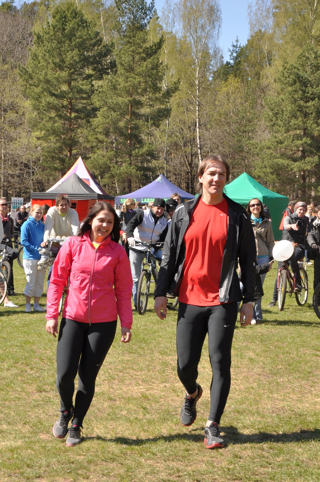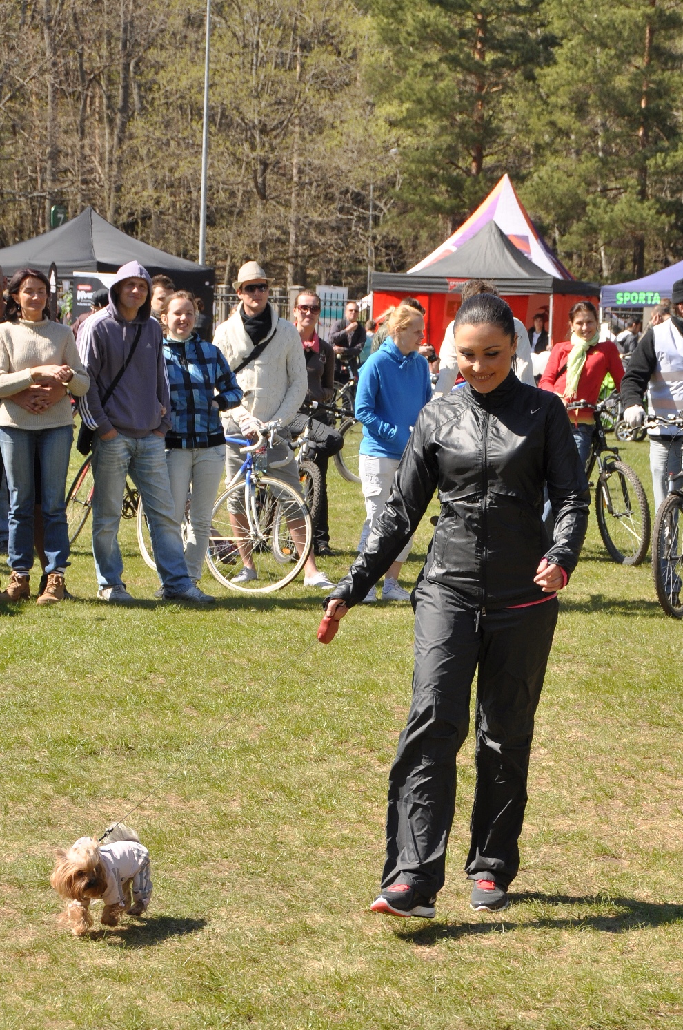 ar savu Jorkšīras terjeru, Markus Riva un Liene Šomase – sportisku skrējienu,
