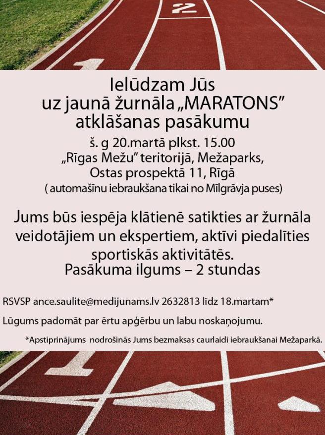 Tā kā kultūras un atpūtas parks "Mežaparks" kļuvis par populāru aktīvās atpūtas pasākumu norises vietu, SIA "Mediju nams" sadarbībā ar SIA "Rīgas meži" šā gada 20. martā izvēlējies prezentēt jauno aktīvās atpūtas žurnālu "Maratons" "Mežaparka" Lielās estrādes telpās.